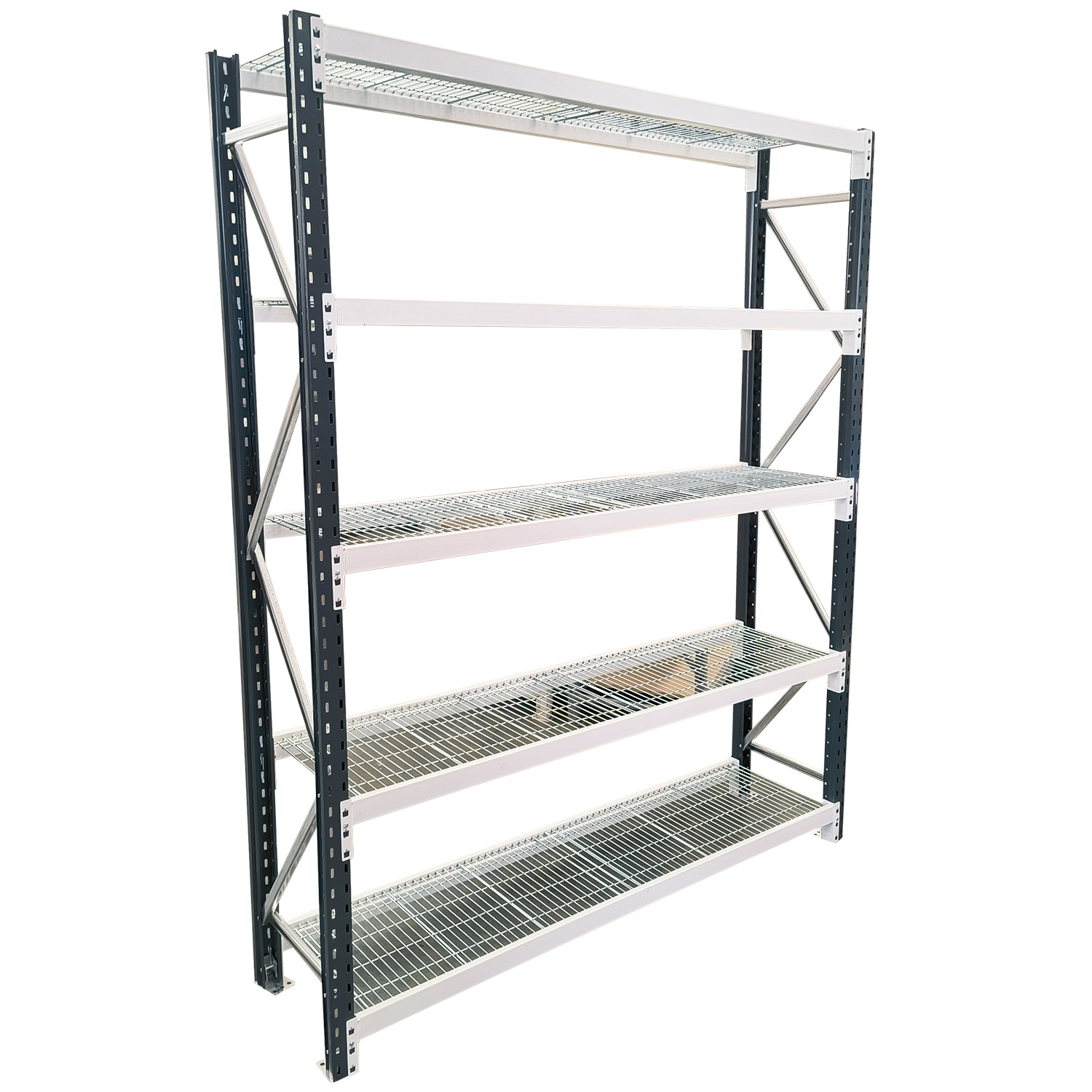 This quality used Longspan Shelving Bay features five levels with mesh infills and a 350kg load capacity per level, making it ideal for storing a wide range of items. Finished with charcoal frames and white beams, it offers a clean, professional look suitable for warehouses, workshops, or garages.