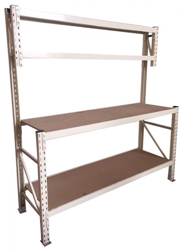 The STORE-IT® Longspan Workbench is a lightweight yet durable solution, perfect for home, garage, warehouse, or workshop use. It features a sturdy particle board work surface, two upper shelves, and one bottom shelf for added storage. With white powder-coated steel frame, it’s designed for strength, stability, and versatility. Supplied with pre-assembled frames, it's quick to set up and built to last.