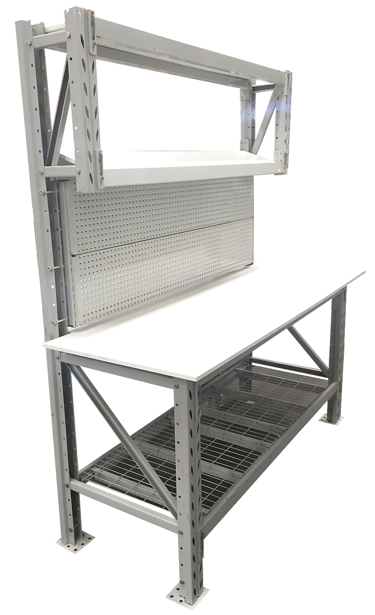 • Industrial Strength: Built from used pallet racking components for lasting strength and stability in demanding work environments.