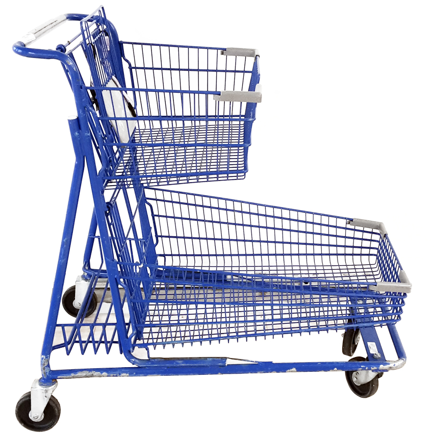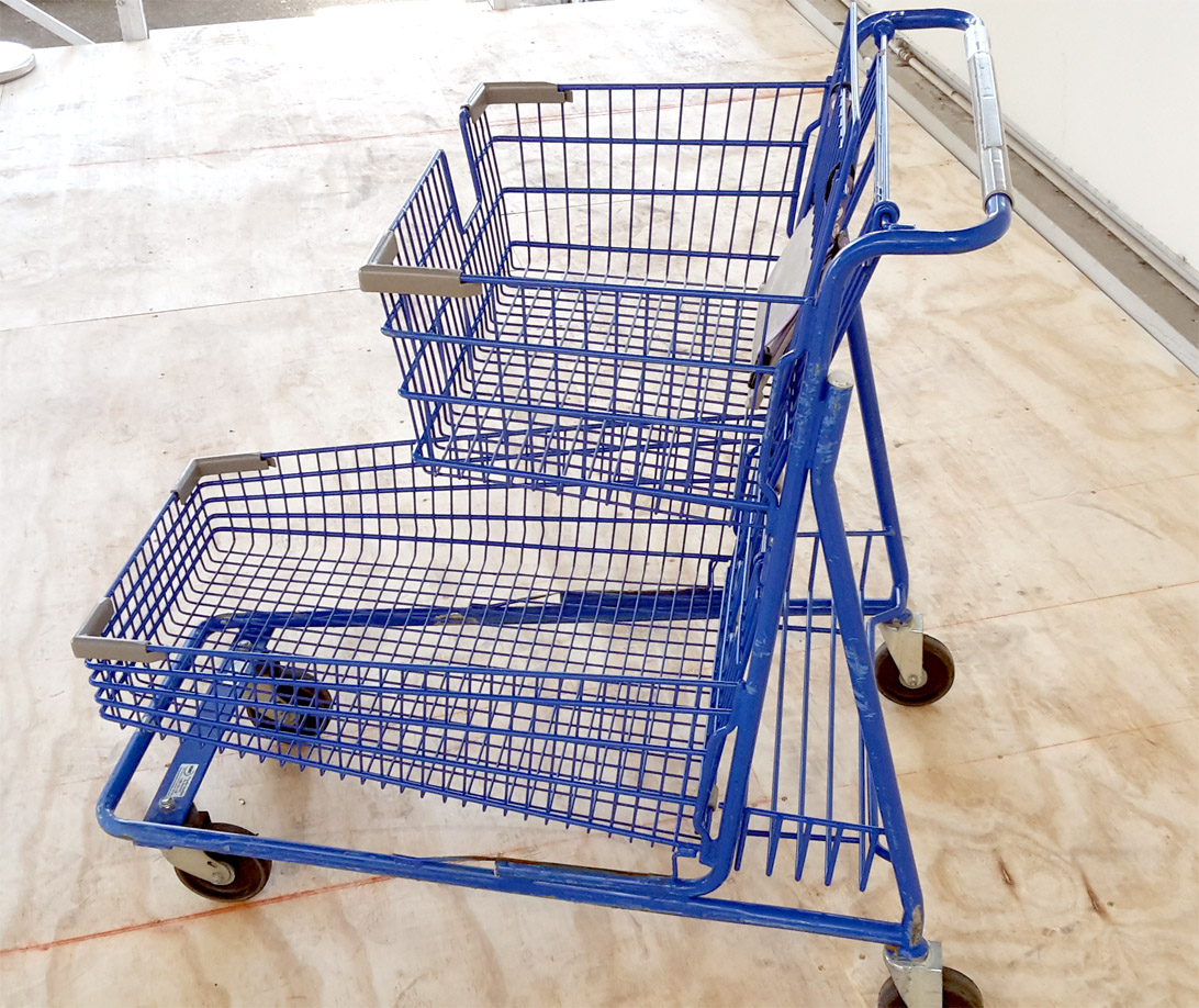 This commercial grade trolley provides 2 separate areas for holding stock. It also features a child seat.